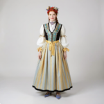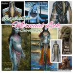 For her human design, I chose a headpiece with fabric that resembles the fins on top of her head. I imagine the mermaid found or stole this outfit when she became human. Looking at it now, I think it shouldn’t fit perfectly and should be worn slightly differently than how traditional Danish clothing would normally be styled.